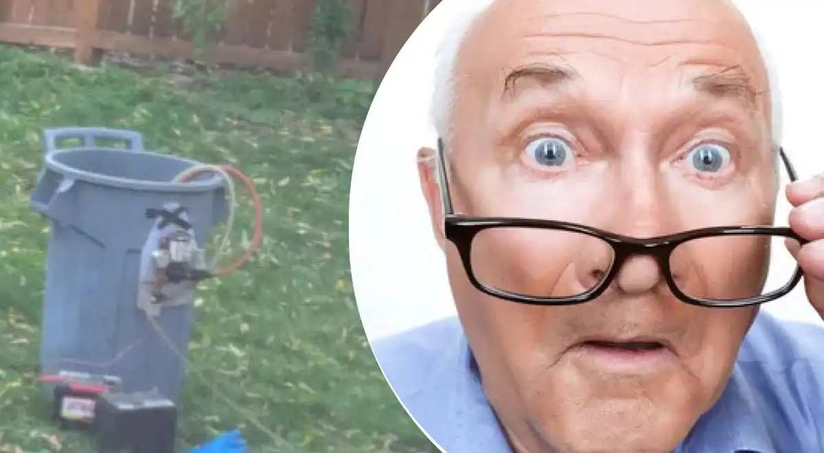 Zdjęcie dziwnej konstrukcji wykonanej z baterii i kosza na śmieci połączonego z drzewem obiegło Reddit, budząc wiele pytań.