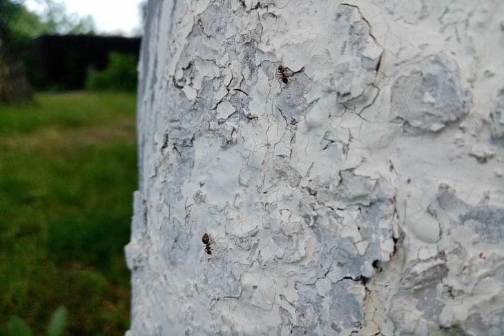 Szkodniki często ukrywają się w szczelinach starej kory, czekając na nadejście ciepłych wiosennych dni. Bielenie siarczanem miedzi niszczy lęgi owadów i zarodniki chorób grzybiczych.